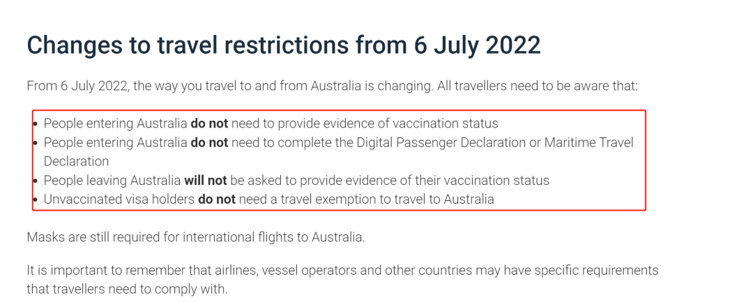 從2022年7月6日起,入境澳洲的所有旅客需注意事項: