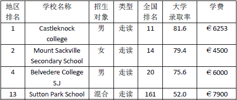 (據2018年Sunday Times愛爾蘭學校排名榜)