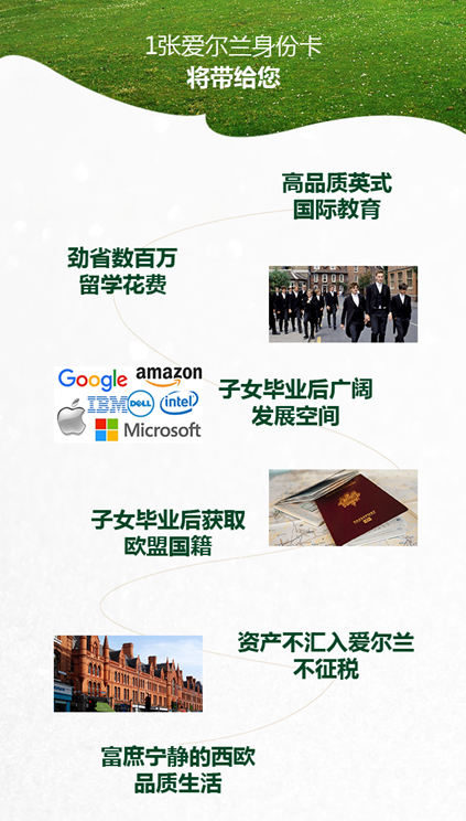 待移民申請獲得愛爾蘭移民局批復后,僅需將100萬歐元在愛爾蘭政府認可項目存放3年,6-8個月即可全家移民愛爾蘭。可有效規(guī)避疫情結束后,愛爾蘭移民變政風險!