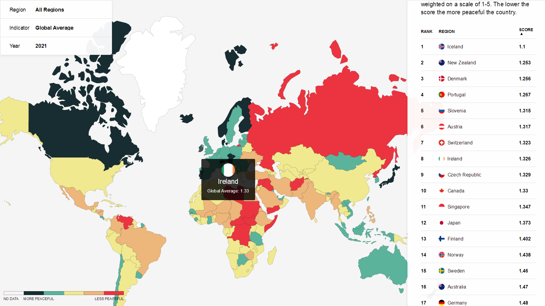 夸累了系列2!2021全球和平指數發布,愛爾蘭又上十佳榜了!
