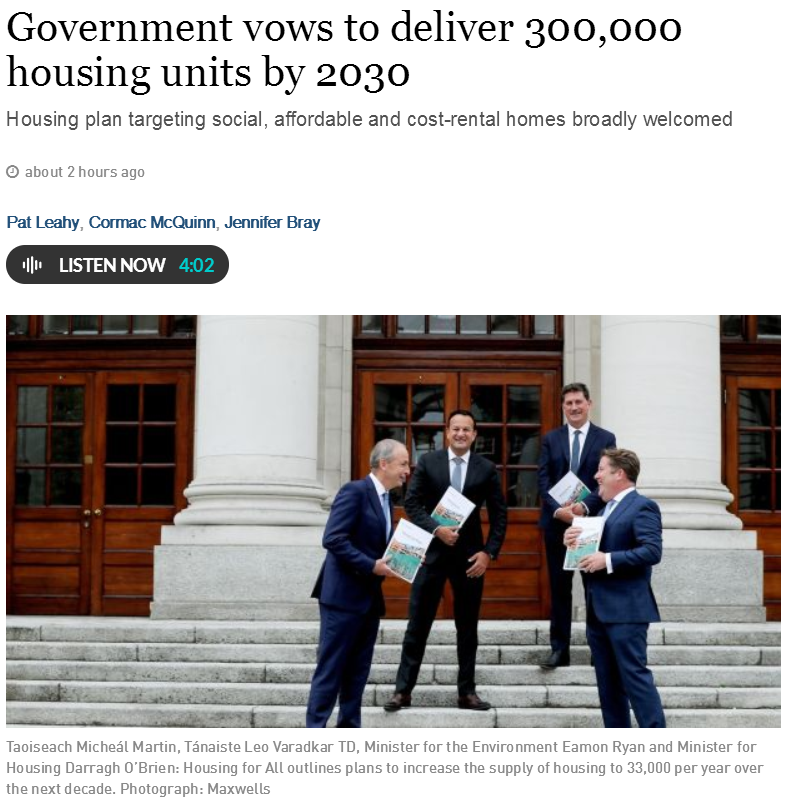 愛爾蘭總理Micheal Martin說,該計劃 "就其范圍、規模和雄心而言,在我們國家的歷史上是前所未有的"。它將提供有史以來最高水平的政府投資,用于建設政府公屋和經濟適用房。
