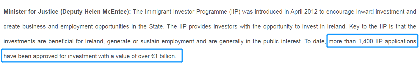 自愛爾蘭推出投資移民計劃(IIP)至今,全球共有1400多組家庭成功獲批,為愛爾蘭吸引投資價值超過10億歐元。