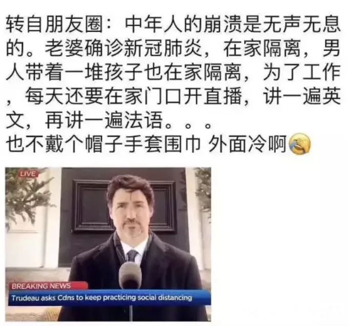 此外,老婆確診,保姆停工,特魯多更是隔離在家單挑三娃,給三個(gè)娃準(zhǔn)備日常飲食、分發(fā)玩具、陪同玩耍、洗澡……