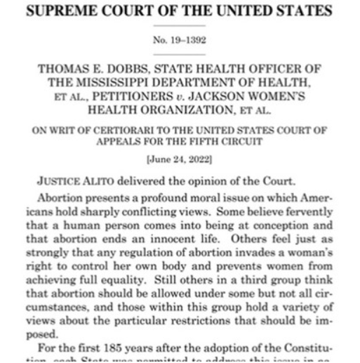 上世紀70年代,得州法律規定墮胎犯法,一位想要墮胎的女性化名羅伊Roe起訴達拉斯總檢察長韋德Wade,1973年最高法院以7:2的投票結果,裁定得州的墮胎禁令違背憲法的個人隱私權,該裁決讓女性墮胎權在憲法上有了保障。