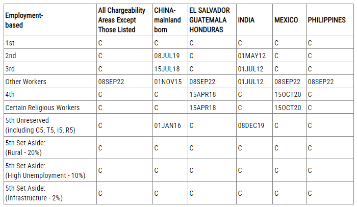 10月6日,美國國務院簽證辦公室公布了2022年11月的簽證公告。職業移民類別幾乎與上月保持一致,原地踏步。