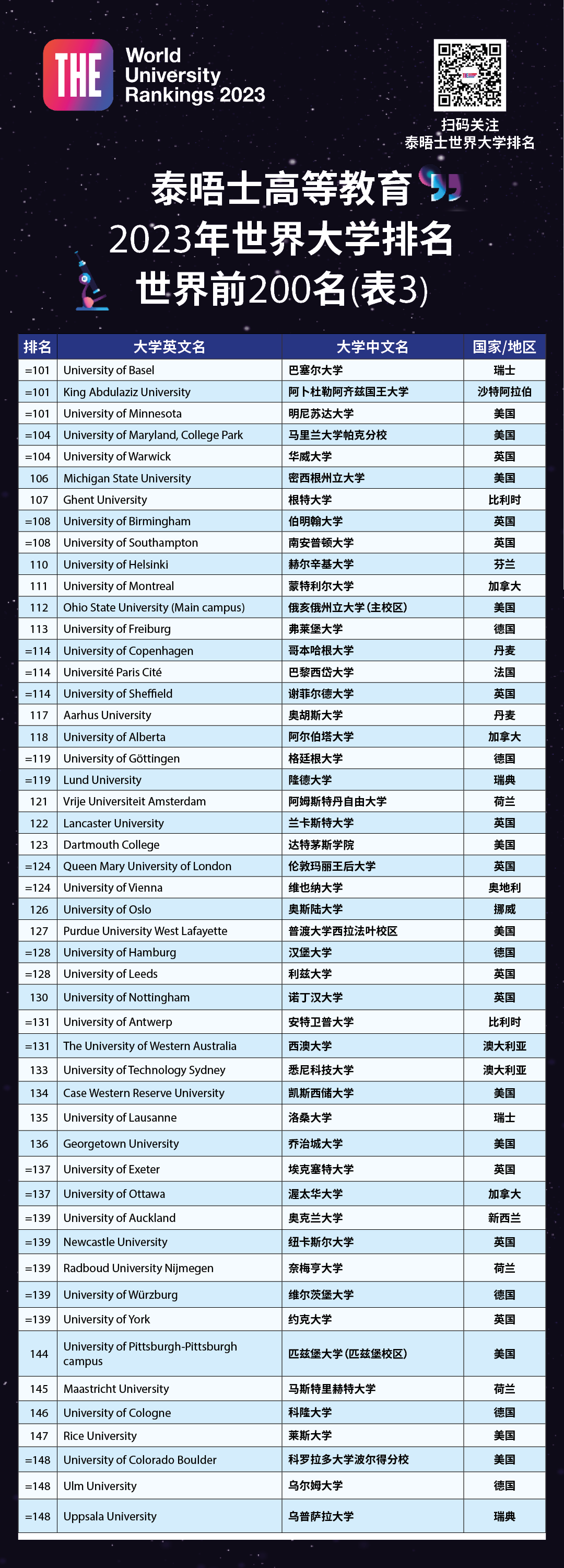 10月12日,泰晤士高等教育(THE)2023年世界大學排名正式發(fā)布。今年共1799所高校上榜,創(chuàng)歷史新高。