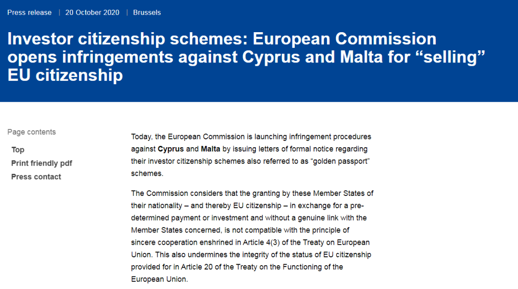 - 2020-10-14.重磅突發 | 11月1日起,塞浦路斯護照項目關停!