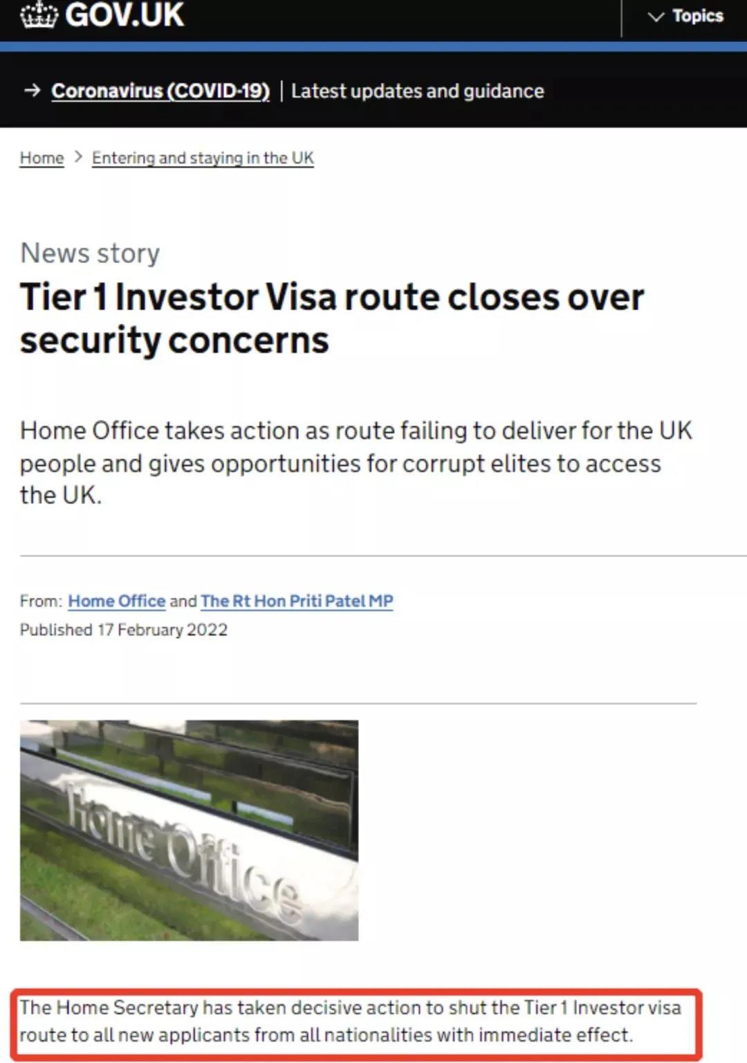 重磅!英國內政部2月17日正式宣布,即刻關閉Tier 1投資移民(Investor)簽證。