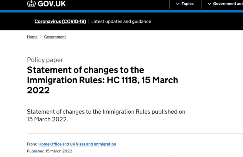 英國內政部于當地時間3月15日突然拋出重磅信息,更新并發布了移民法修訂通知《Statement of Changes to the Immigration Rules: HC 1118》。根據這份內政部提交給議會的移民法規修訂通知,多項移民類別政策有重大調整,其中涉及到大家尤為關心的英國首席代表簽證類別(Sole Representative Visa)。如果該移民法規的修訂被議會正式通過,則該類別的簽證申請通道將于2022年4月11日上午9點正式關閉。